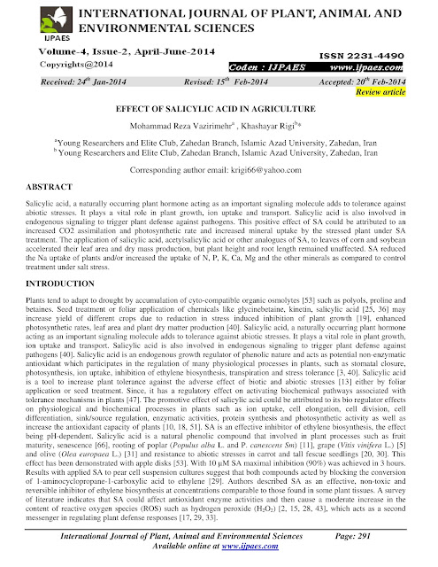 SALICYLIC ACID IN AGRICULTURE (หน้าที่สำคัญ)