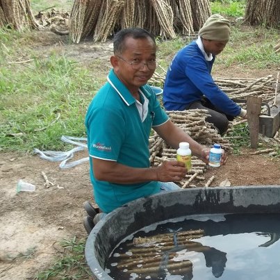 จุ่มชุดอ้อยใน ซาร์คอน(SARCON ) เพื่อช่วยเพิ่มอัตราการงอก ช่วยเพิ่มพื้นที่ของใบ ทำให้ใบใหญ่ขึ้น และช่วยความสูงของอ้อยด้วย